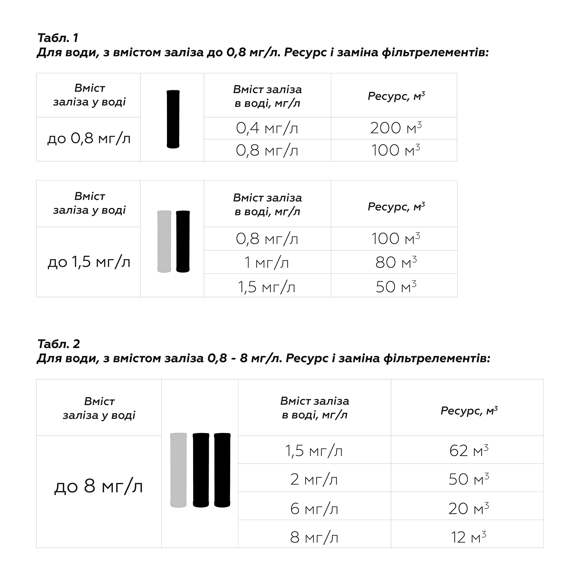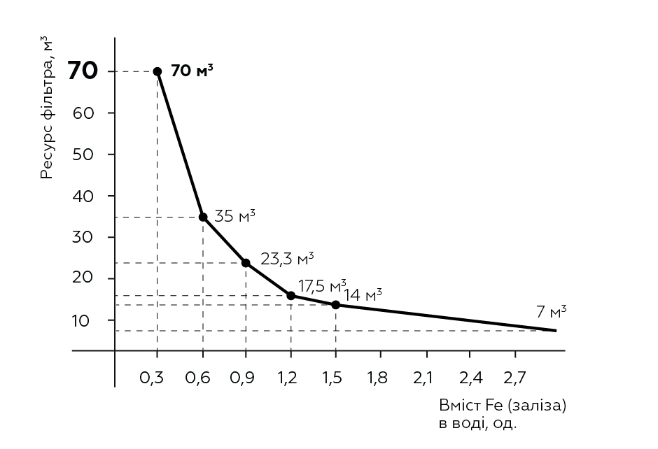 *При повышенных значениях железа (Fe) ресурс можно определить по графику на рис. 2